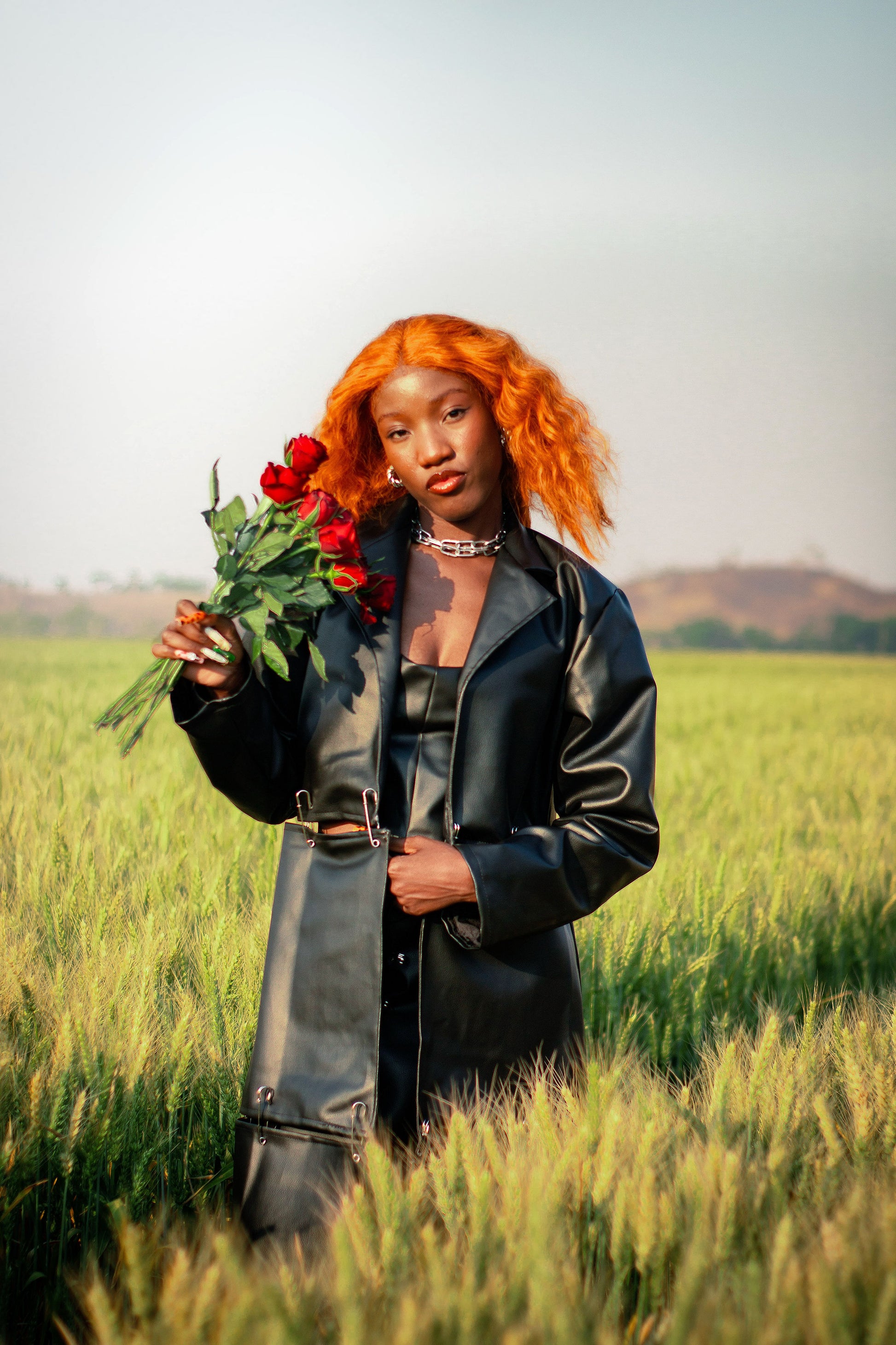 A transformative coat designed with two deliberate cuts, allowing it to be worn in multiple forms: as a cropped layer, a mid-length jacket, or as the full structured coat. Each section is connected using safety pins a raw, rebellious detail that embodies reconstruction and versatility. The piece blurs the boundary between function and expression, inviting the wearer to play with proportion, attitude, and form.